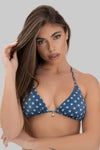 Triangolo Onolulu MaculatoTop bikini triangolo imbottito in microfibra con coppe estraibili e allacciatura annodabile sulla schiena. Si indossa al collo o a reggiseno, fantasie moda, taglie 1–5. Grazie alla chiusura posteriore annodabile e alla possibilità di indossarlo legato al collo o a reggiseno, questo triangolo bikini...