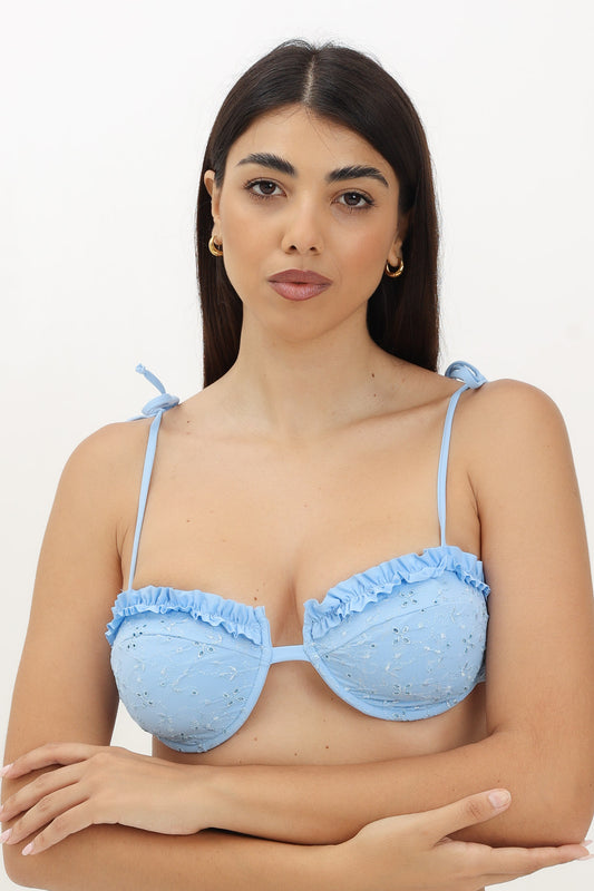 Corpetto Judith Glitter BluTop bikini con incrocio e ferretto, coppa strutturata non estraibile, spalline e circonferenza regolabili. In microfibra brillantinata glitter super lucente, vestibilità classica. Raffinato e luminoso, il top bikini da donna con incrocio e ferretto in microfibra brillantinata glitter unisce eleganza, sostegno e brillantezza. Il...