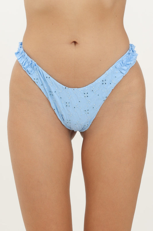 Slip a V con ruchesSlip a V con ruches laterali e con taglio brasiliano . Realizzato su tessuto Microfibra e ricamato in Pizzo Sangallo .