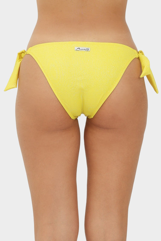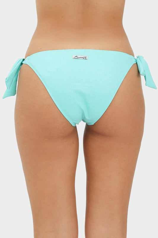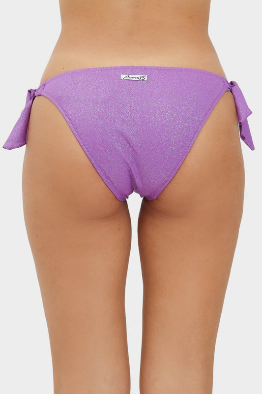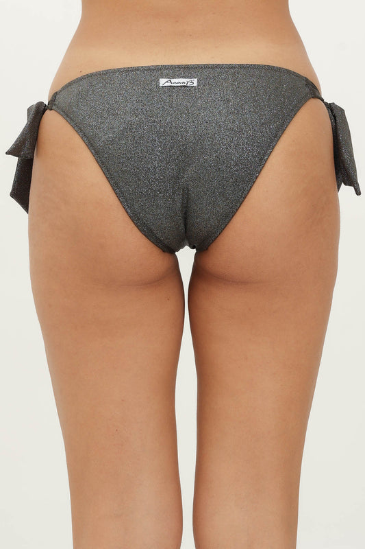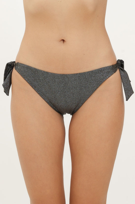 Slip classico regolabileSlip bikini con fiocchi annodabili sui fianchi, vestibilità regolare, in microfibra brillantinata glitter super lucente. Taglie dalla 1 alla 5. Luminoso e femminile, lo slip bikini da donna con fiocchi annodabili sui fianchi è realizzato in microfibra brillantinata glitter, un tessuto morbido e scintillante...