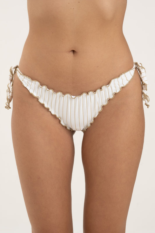 Slip classico regolabileSlip bikini con fiocchi annodabili sui fianchi, vestibilità regolare, in microfibra brillantinata glitter super lucente. Taglie dalla 1 alla 5. Luminoso e femminile, lo slip bikini da donna con fiocchi annodabili sui fianchi è realizzato in microfibra brillantinata glitter, un tessuto morbido e scintillante...