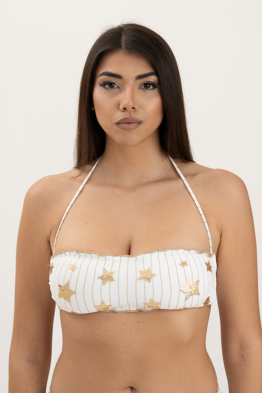 Corpetto Judith Glitter AcquaTop bikini con incrocio e ferretto, coppa strutturata non estraibile, spalline e circonferenza regolabili. In microfibra brillantinata glitter super lucente, vestibilitĂ classica. Raffinato e luminoso, il top bikini da donna con incrocio e ferretto in microfibra brillantinata glitter unisce eleganza, sostegno e brillantezza. Il...