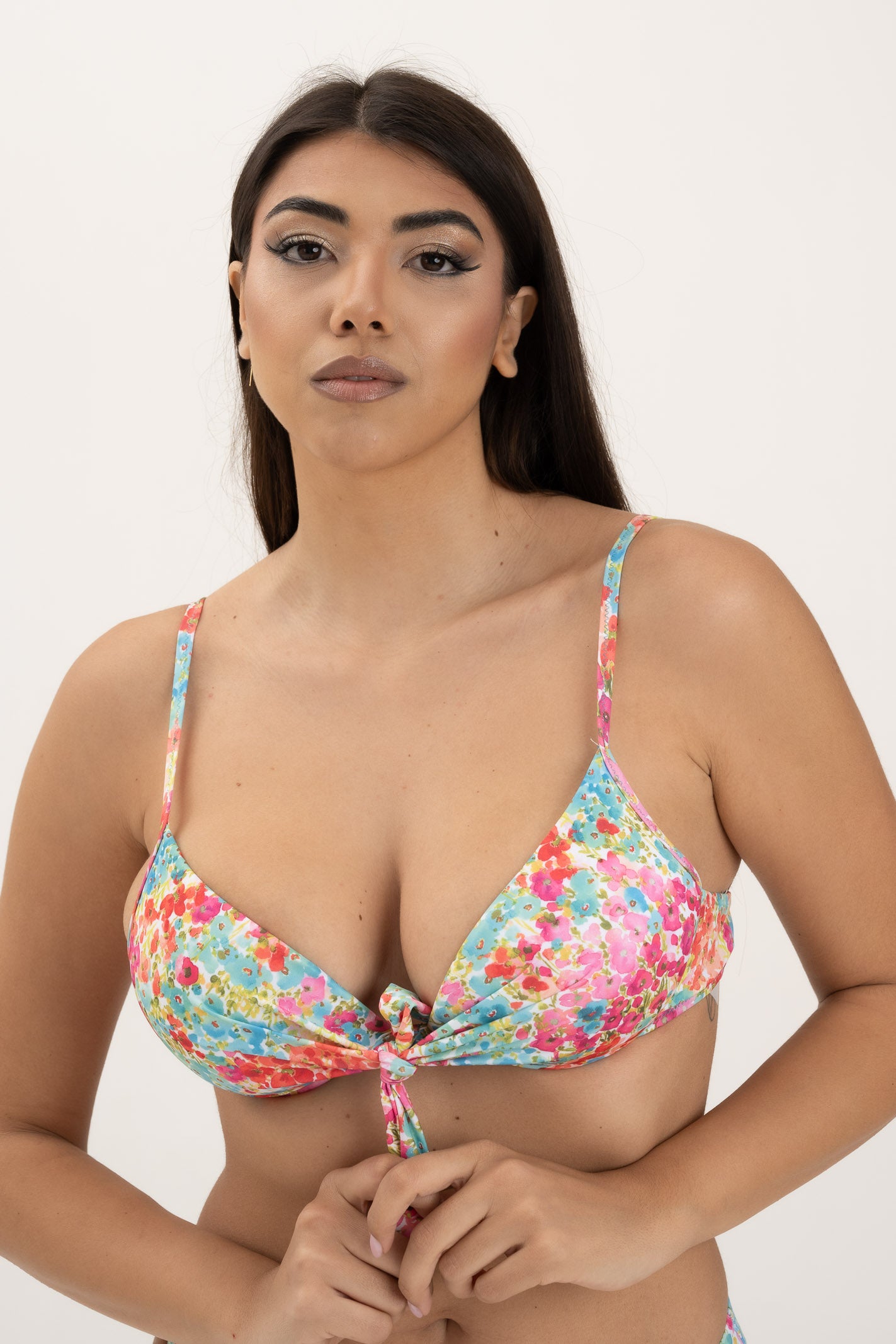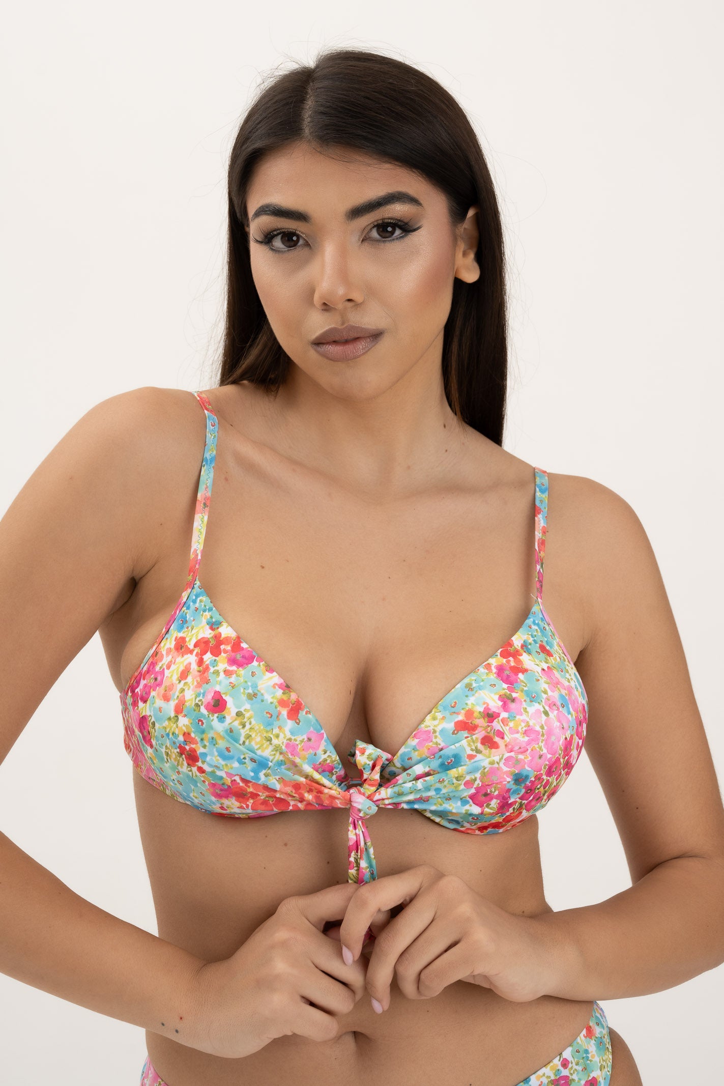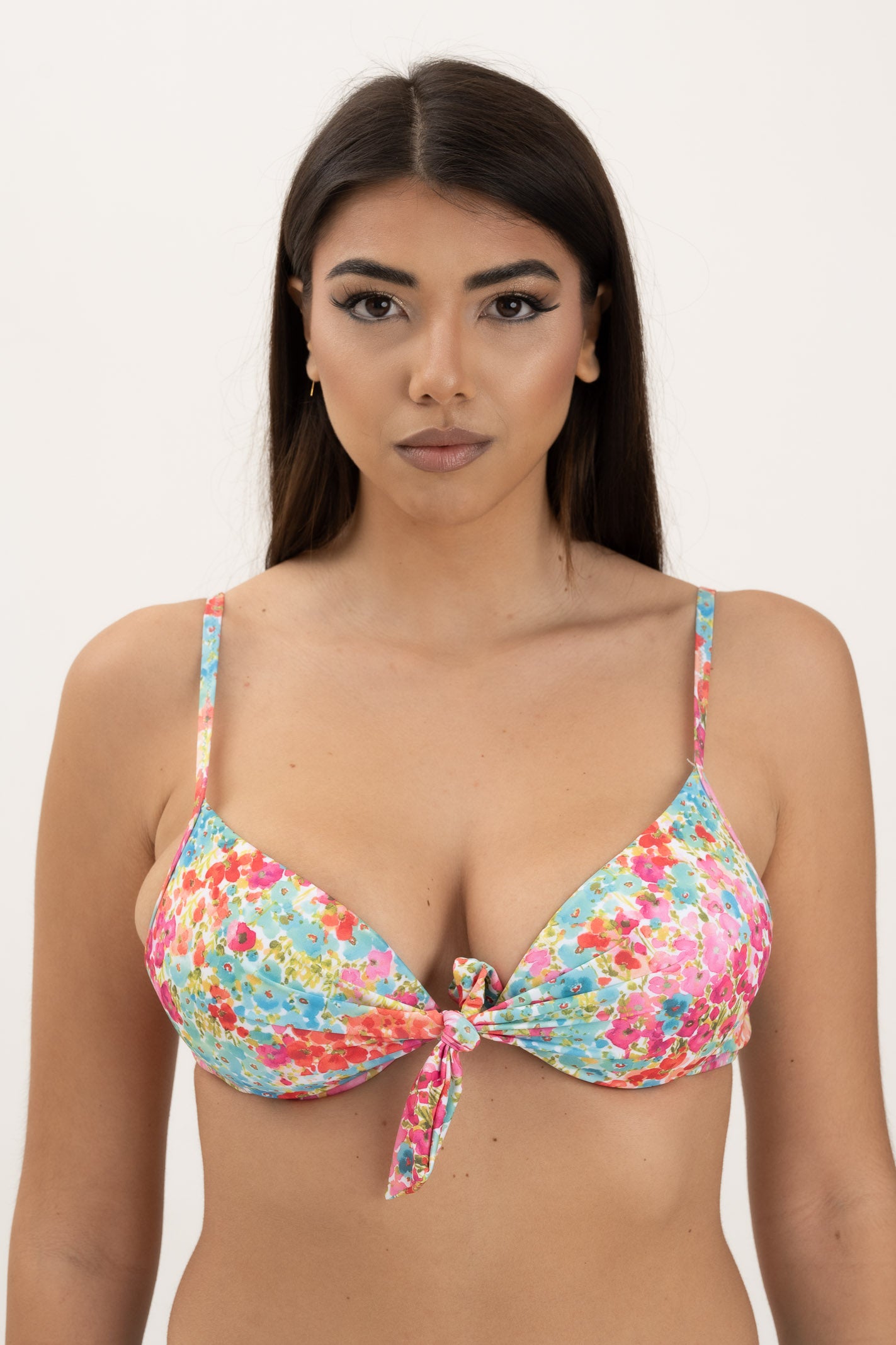 Coppa preformata con ferretto e fiocco centrale. Bretelle regolabili e chiusura sulla schiena con gancio. Nelle taglie 1-2-3 è presente imbottitura push-up (estraibile). Nelle taglie 4-5 la coppa è preformata...