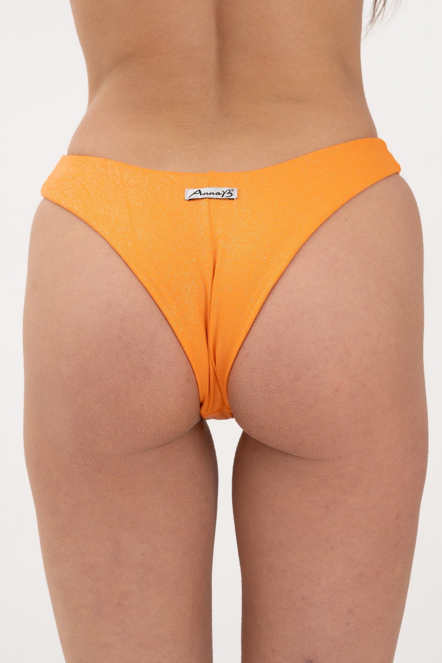 Brasiliana bikini donna in microfibra brillantinata con particolare forma a V che slancia la gamba ed esalta la figura. Coprenza ridotta, effetto super luccicante e splendente al sole.