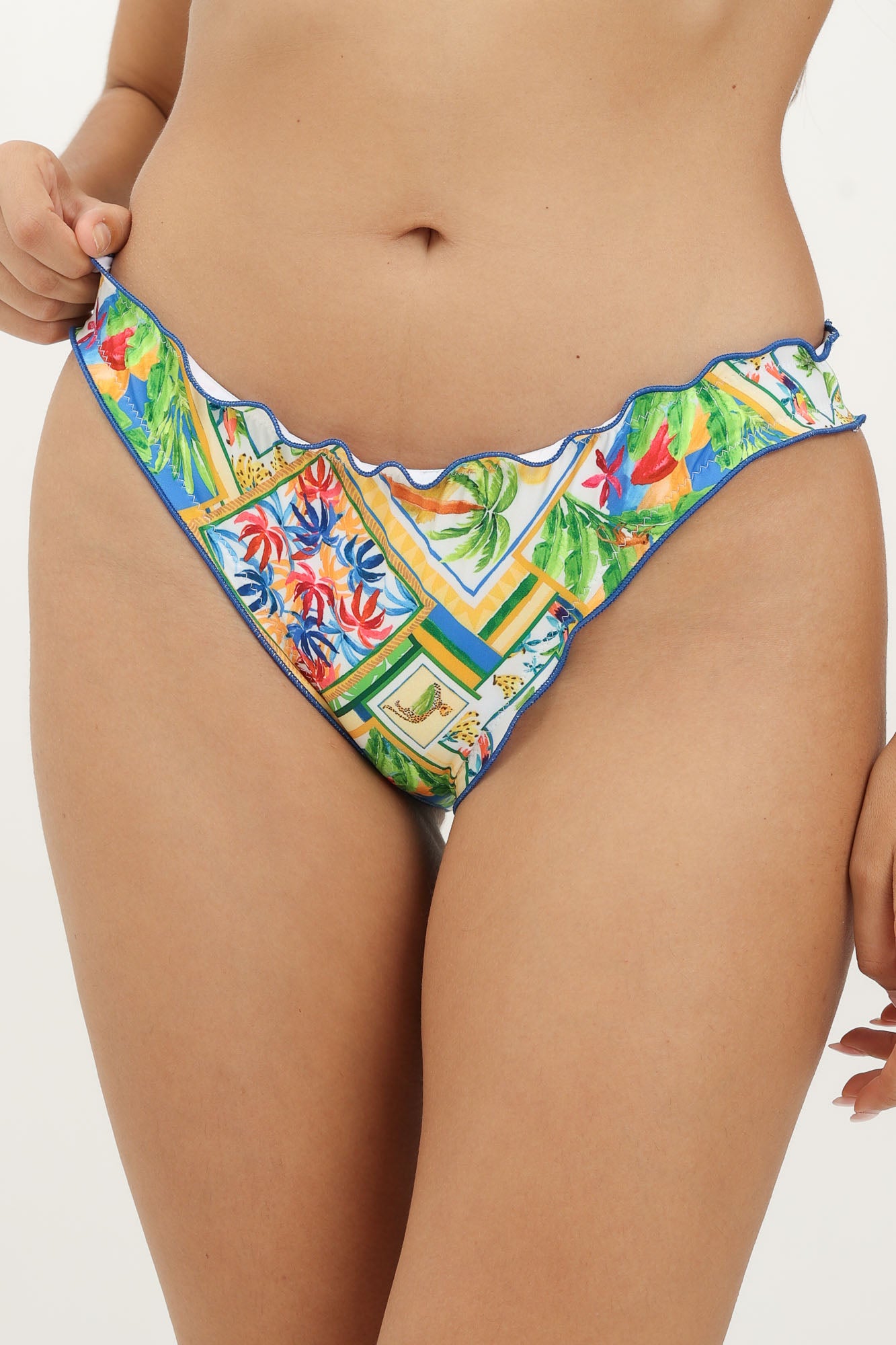 Slip classico con fiocchi laterali e arricciato . Realizzato su tessuto Microfibra .
