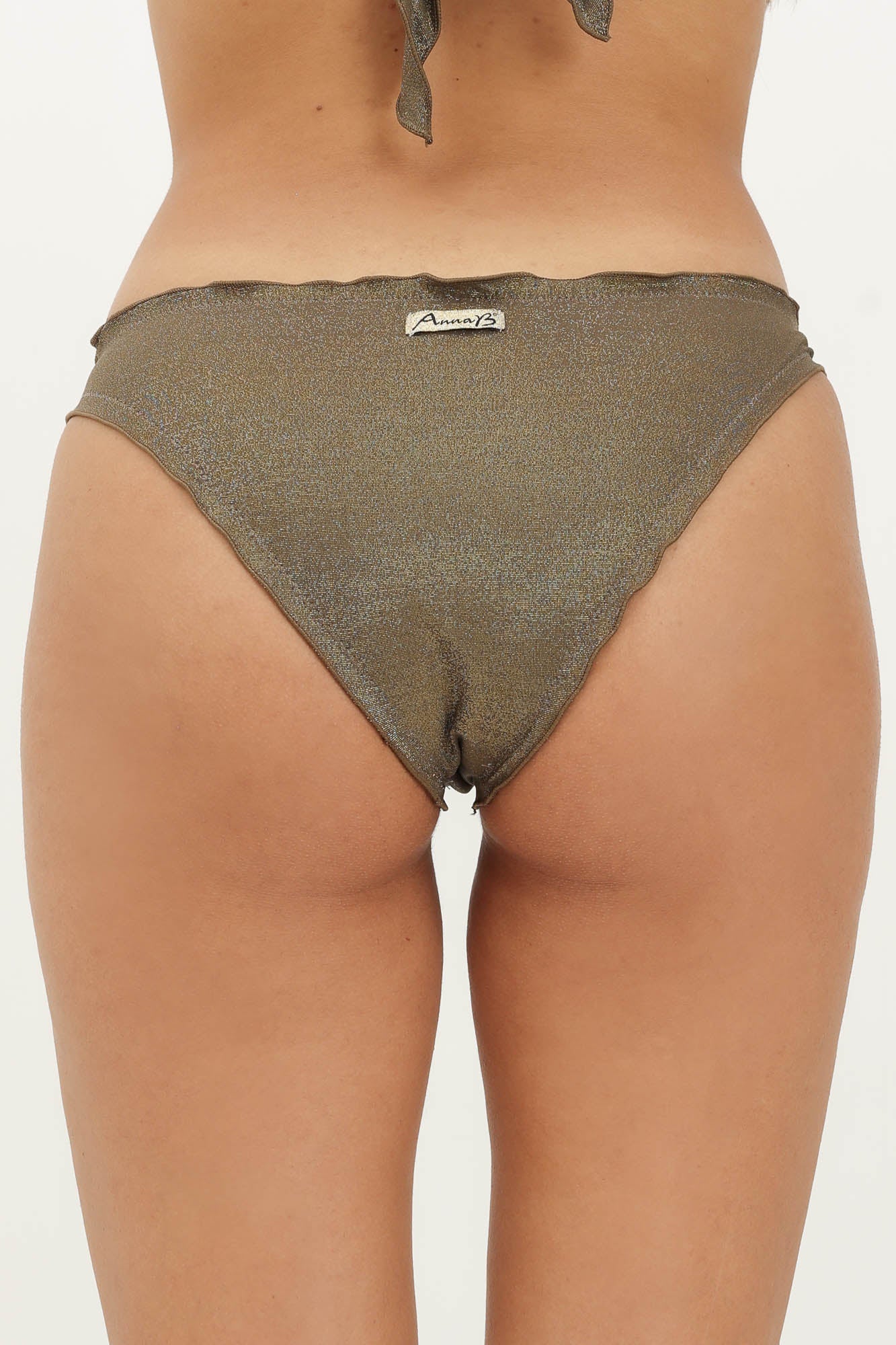 Slip con altezza laterale 3 cm e taglio classico , con arriccio .  Realizzato su tessuto Lurex .