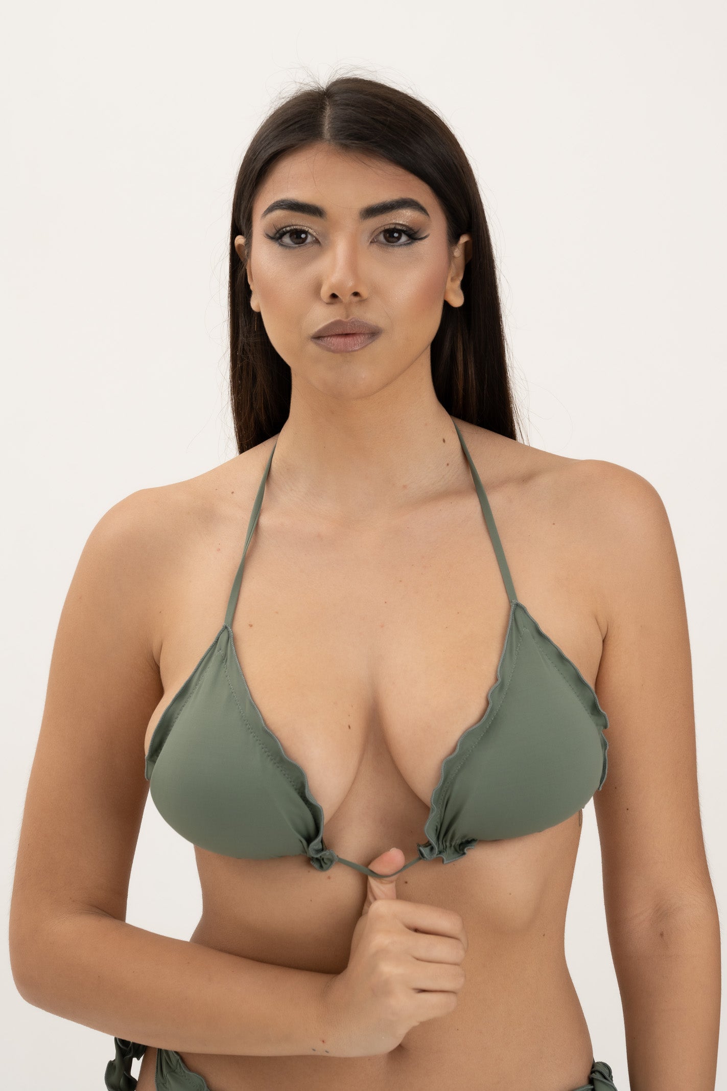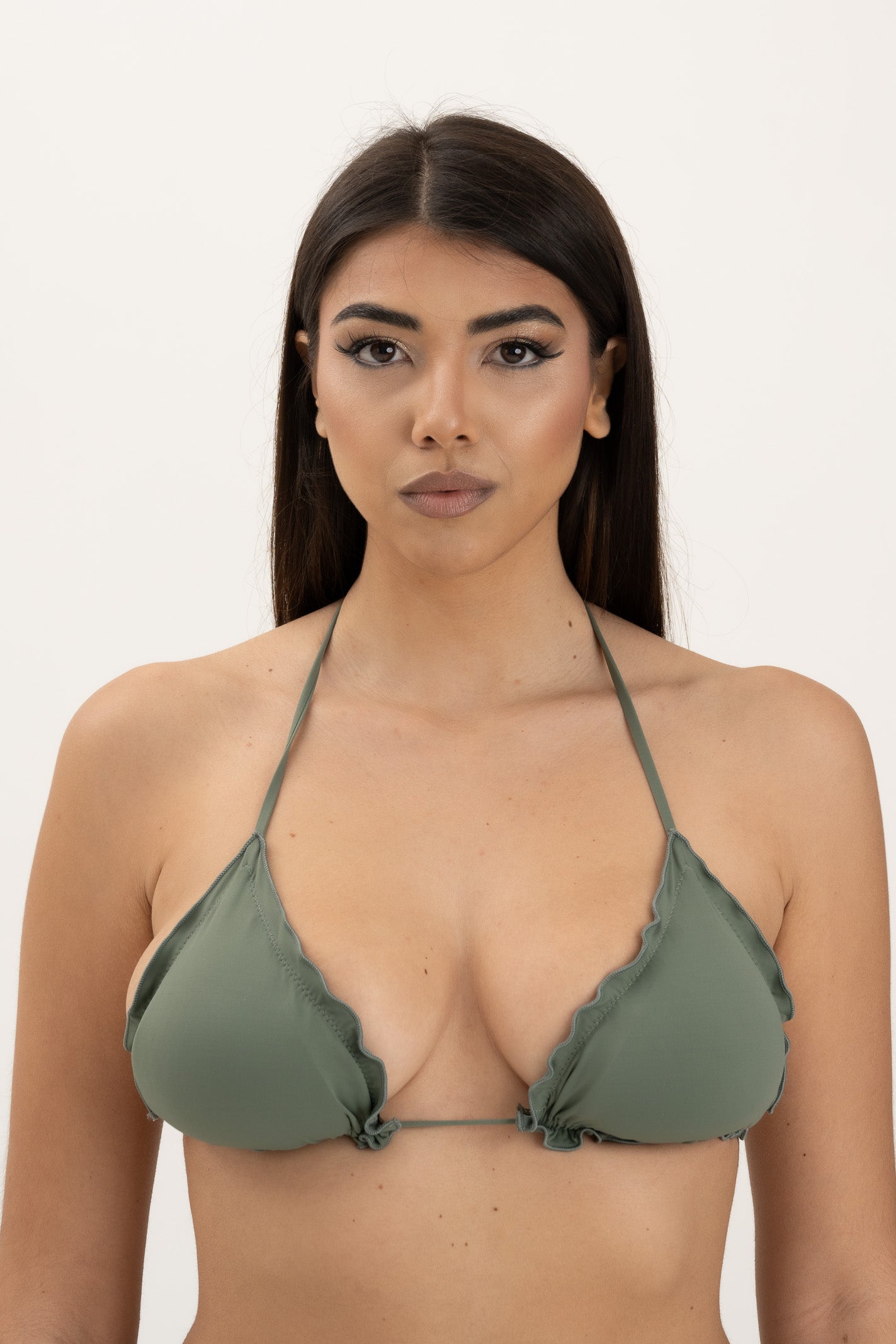 Triangolo Frou-Frou con orlo arricciato e coppe preformate estraibili, realizzato in microfibra morbida in colori basic mixabili.