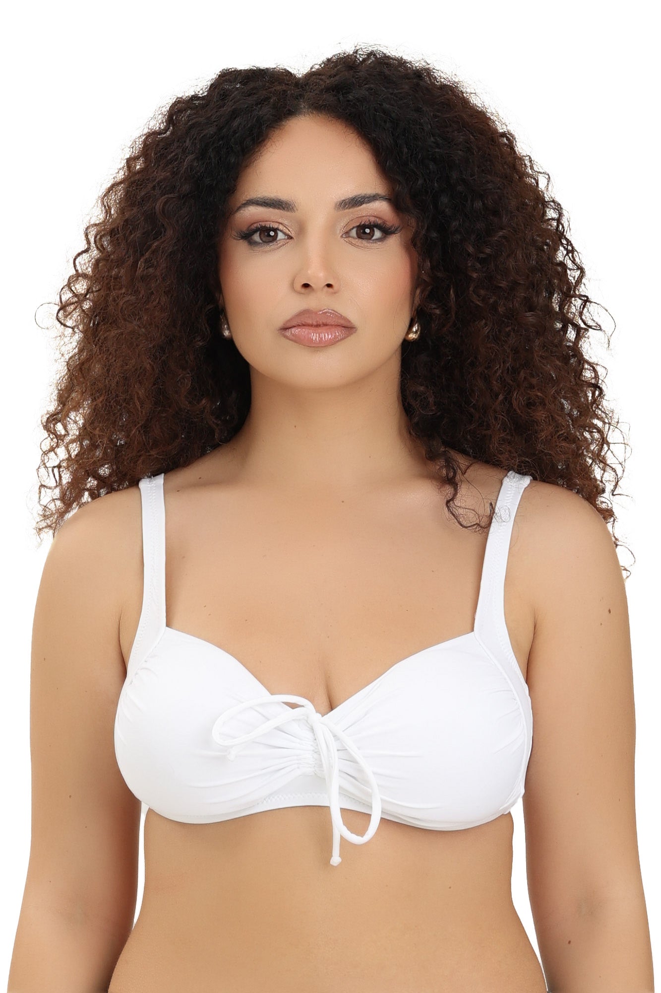 Corpetto con coulisse centrale, che consente di regolare l'altezza e la scollatura, ideale per seno abbondante. Coppe estraibili, bretelle regolabili, chiusura con gancio, realizzato in microfibra morbida. Taglie 3–8 curvy. Vestibilità comoda e femminile.