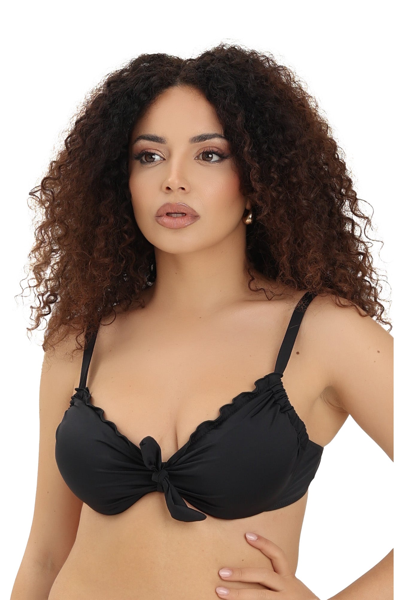 Top bikini Isabel con ferretto, orlo frou-frou e fiocco sul décolleté.  Realizzato in morbida microfibra di alta qualità, questo top con ferretto integrato valorizza il décolleté garantendo comfort e stabilità...