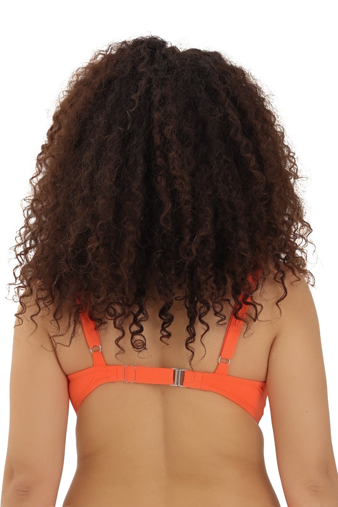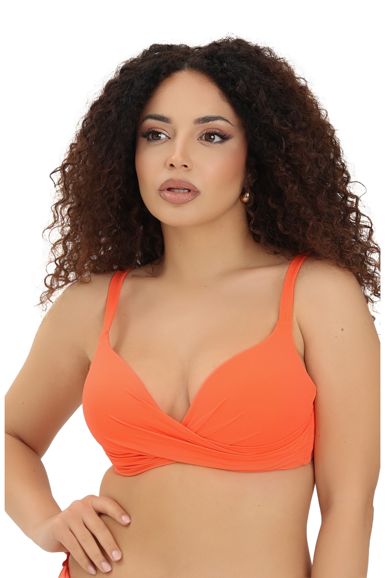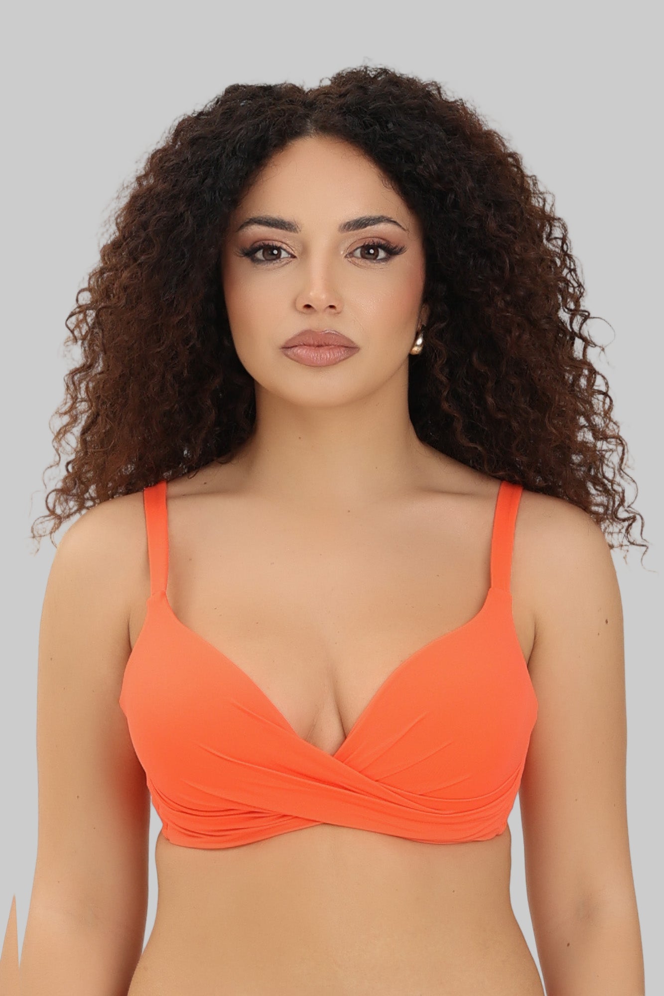 Top bikini con incrocio e ferretto, coppa strutturata non estraibile, spalline e circonferenza regolabili. In microfibra morbida e comfortevole, vestibilità classica.