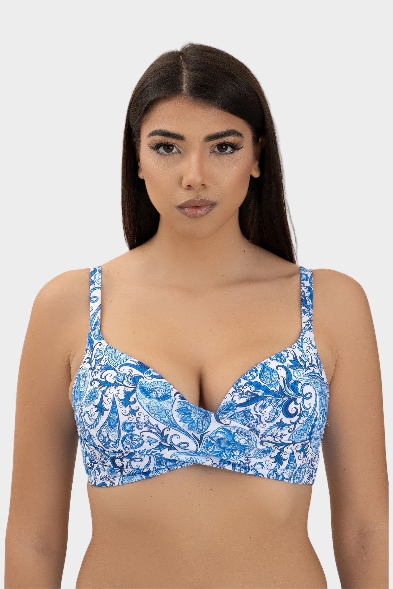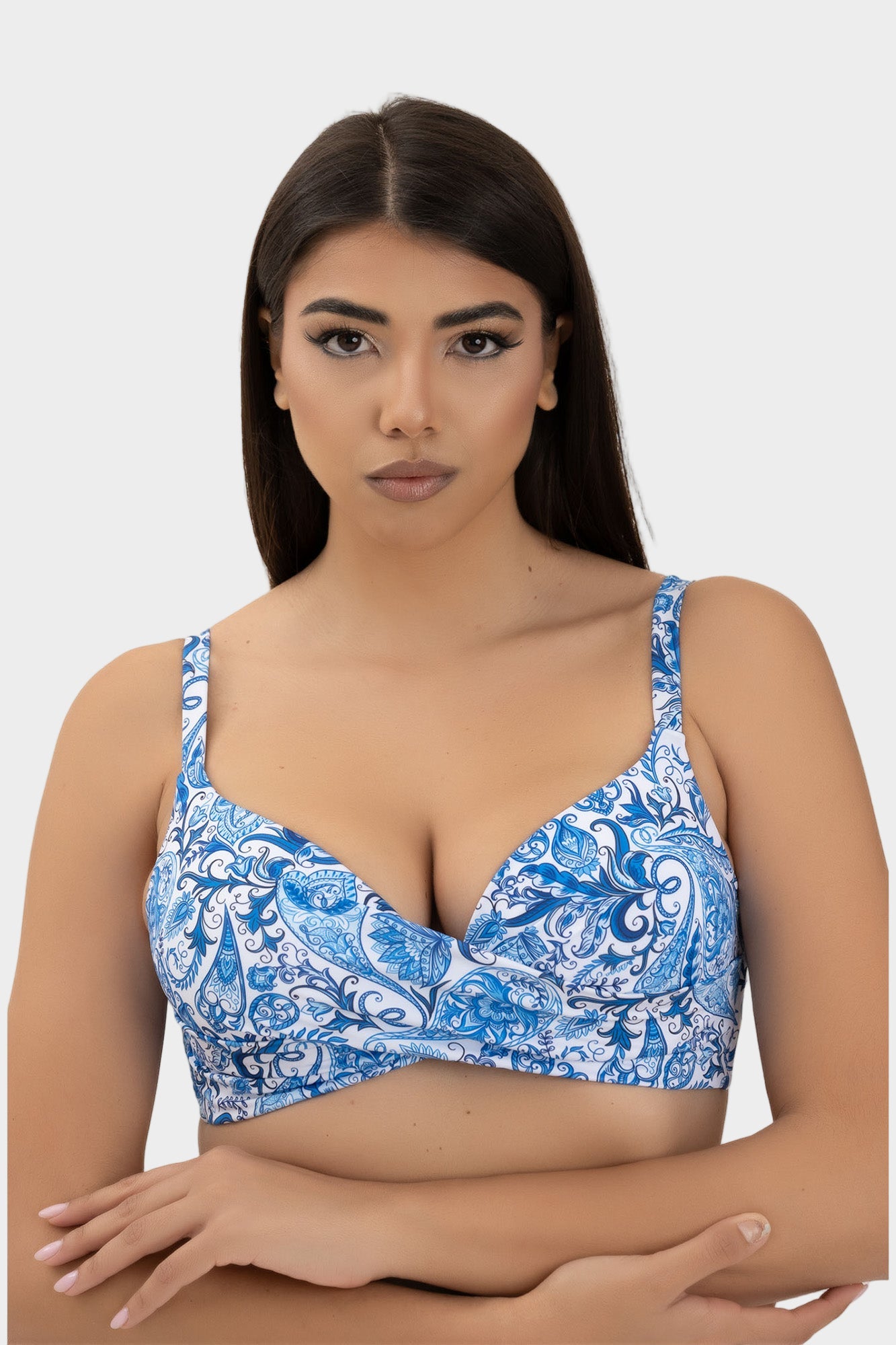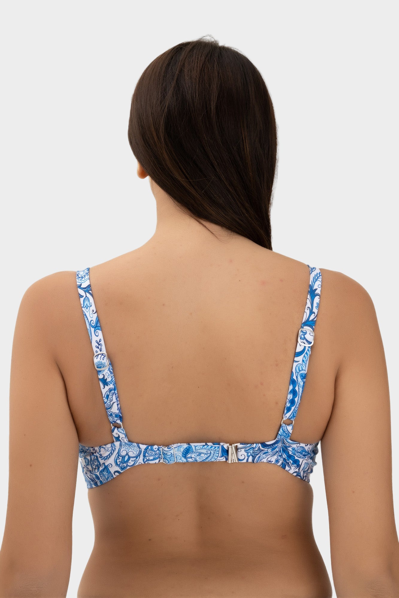 Top bikini con incrocio e ferretto, coppa strutturata non estraibile, spalline e circonferenza regolabili. In microfibra morbida e comfortevole, vestibilità classica. Il corpetto Judith unisce eleganza, sostegno e brillantezza. Il tessuto...