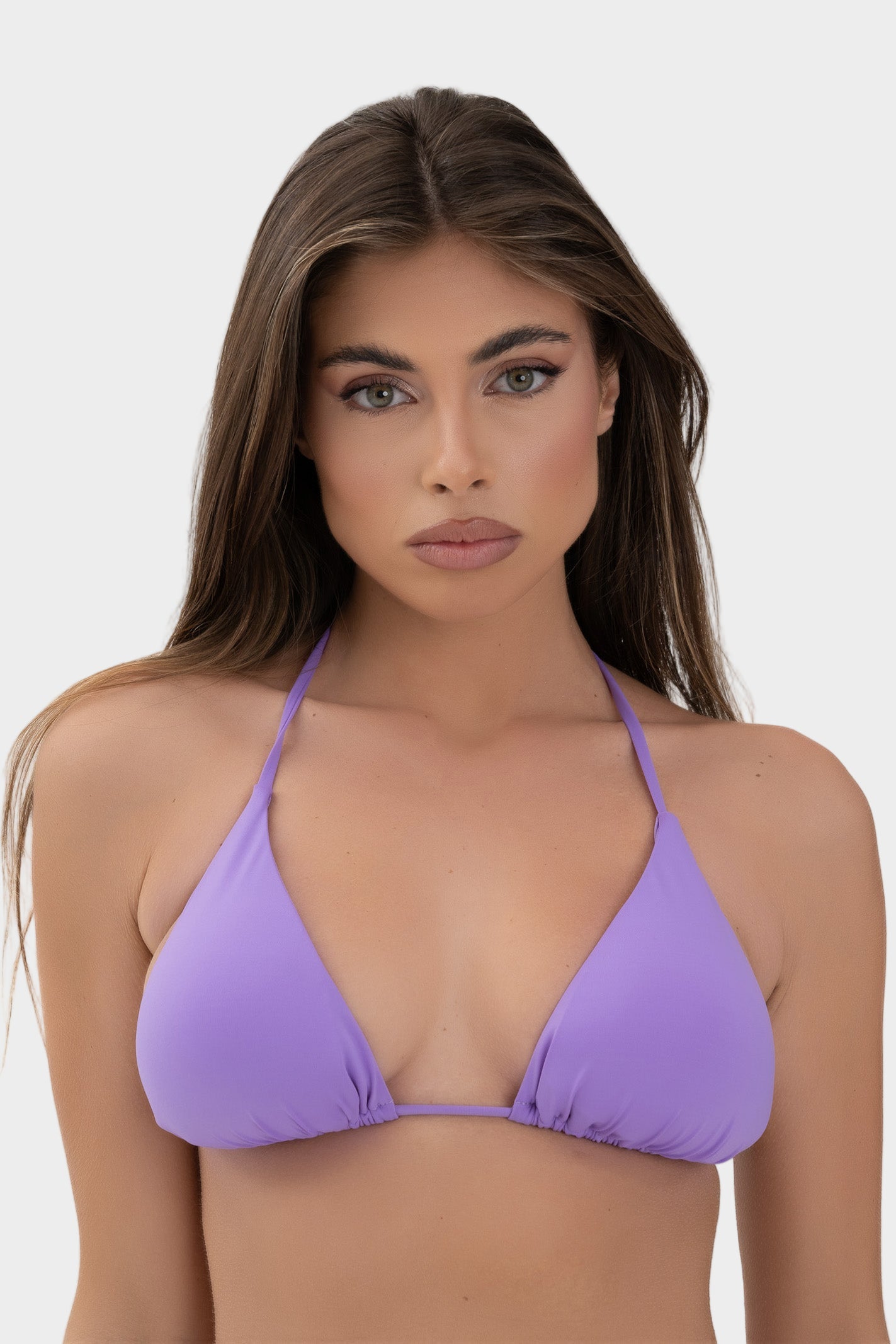 Triangolo Basic scorrevole, realizzato in microfibra tinta unita con coppe preformate estraibili e allacciatura annodabile. Si indossa al collo o a reggiseno, taglie 1–5. Ideale da abbinare agli slip coordinati in tinta...
